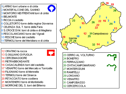 Nel Molise castelli, cinte fortificate, torri urbane ed extraurbane, edifici non militari ma comunque protetti,